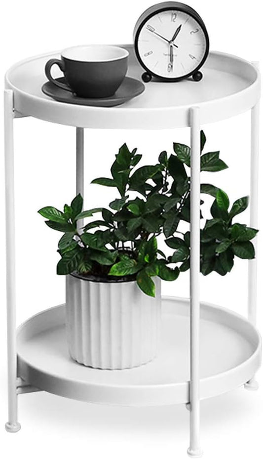 Mesa Lateral Auxiliar 2 Niveles Metalica 42x42x52cm Blanco