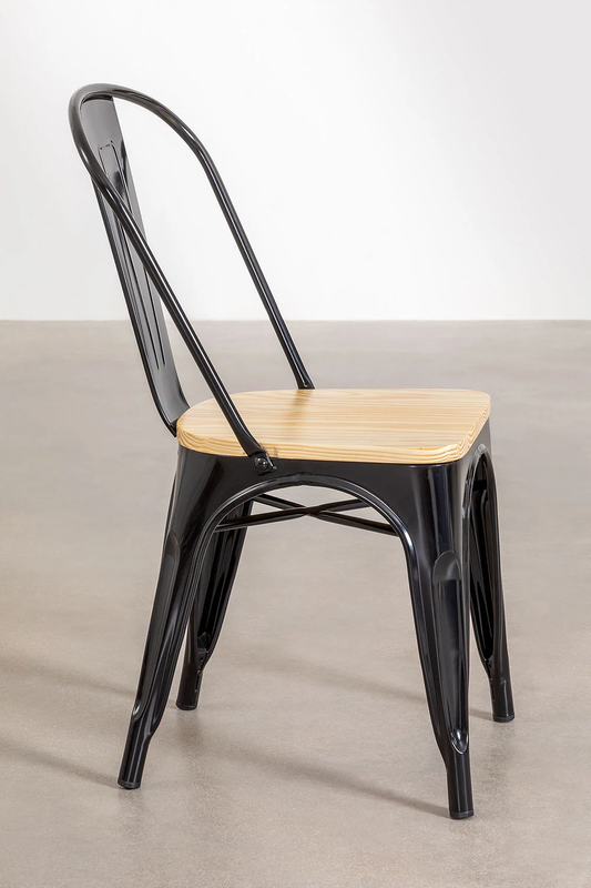 Silla Tolix con Asiento de Madera Negra