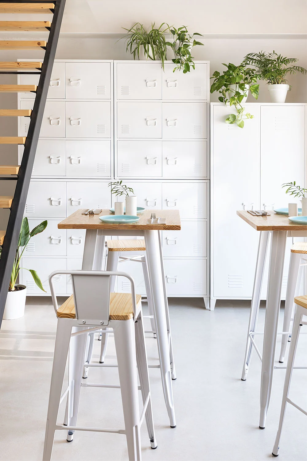 Mesa de Bar Tolix Blanca con Cubierta de Madera 60x60x105
