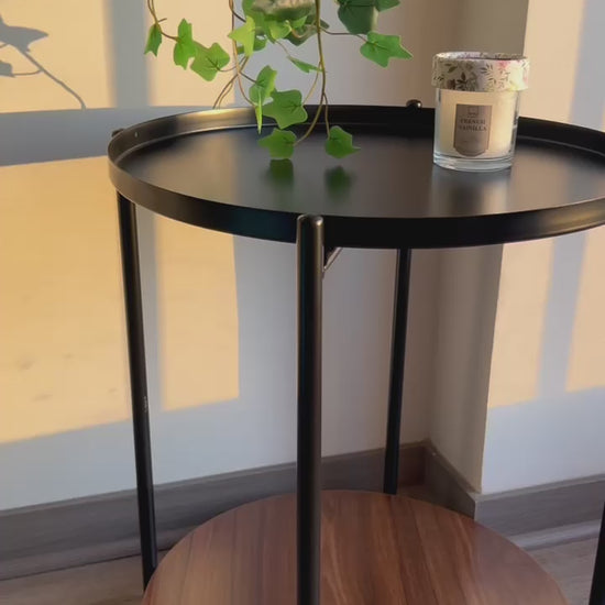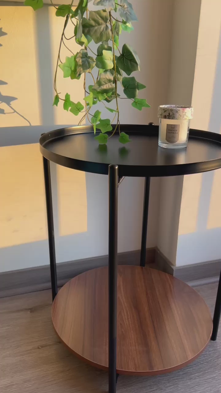 Mesa Lateral Auxiliar 2 Niveles Madera 42x42x52cm Negro