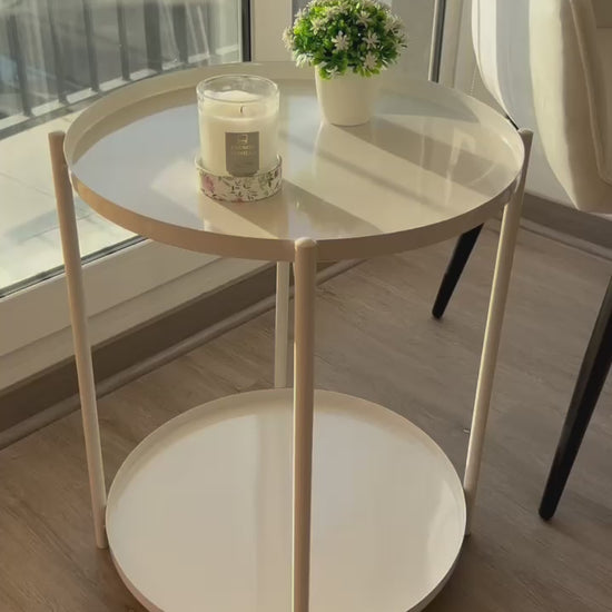 La mesa centro redonda de metal con 2 niveles de bandeja es una pieza de mobiliario elegante y funcional que combina estilo y practicidad. Su diseño minimalista y su estructura metálica robusta la convierten en una opción versátil para cualquier espacio, desde salas de estar modernas hasta oficinas contemporáneas.